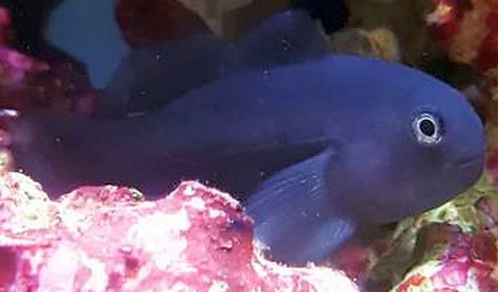 The Black Clown Goby is a small, stout, blunt headed species that has a deep, velvety black, dark brown, to dark purple body color with subtile, lighter vertical stripes or spots. Their body lacks scales and is coated in a mildly toxic mucus that protects them for most predators.