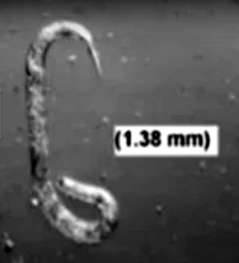 Panagrellus redivivus are approximately 1/16″ long and 50 microns in diameter. They have a round mouth, a pointed tail, and are barely visible to the naked eye. Because of their small size and shape, and the fact that they can live in fresh water for 12 hours or more, they are a prime live food source for fish that are too small to eat brine shrimp nauplii..