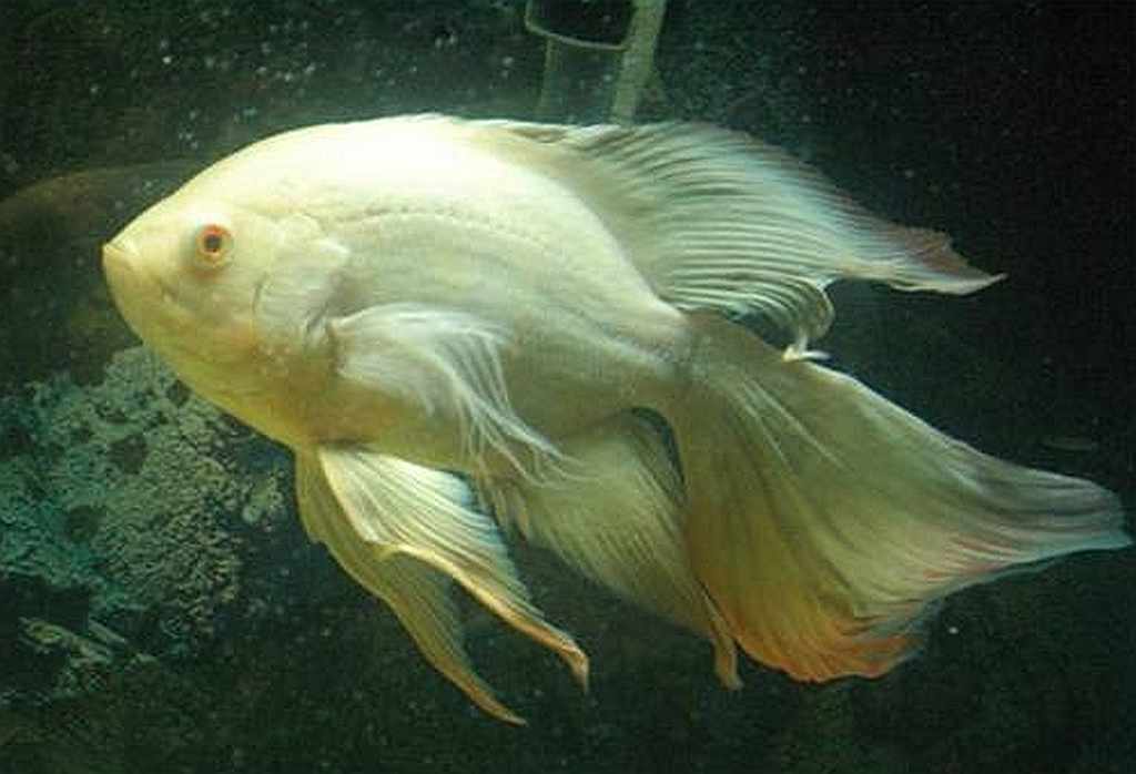Several varieties of Astronotus ocellatus have been developed by breeders over the years for the aquarium hobby. These include the Red Tiger Oscar which has marbled patches of red pigmentation, the Red Oscar which has mainly red coloration on its flanks, Albino Oscars which are all white, Zebra Oscars which are black and white with gray shading, and a recently developed long finned variety called the Veil Tail Oscar.
