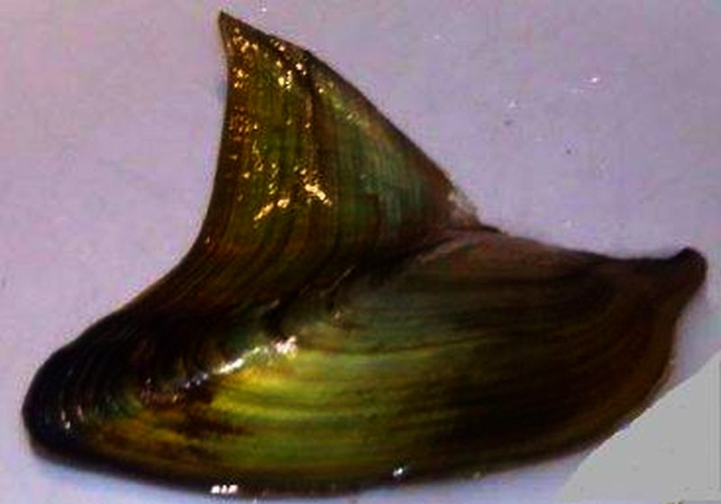 The freshwater Shark Fin Mussel (Hyriopsis bialatus) known to tropical fish keeping enthusiasts as the Shark Tooth Clam, Sailfin Clam, Pearl Mussel, Shark Tooth Mussel, or Shark Fin Shell is native to Southeast Asia and most frequently found in the sandy river bottoms of Thailand, Cambodia, and the Malay Peninsula.