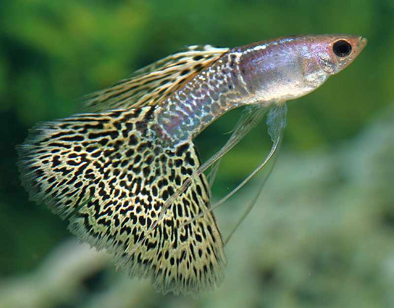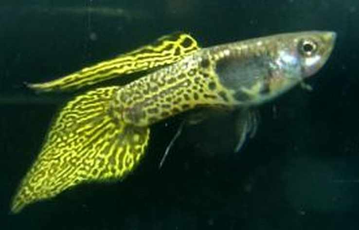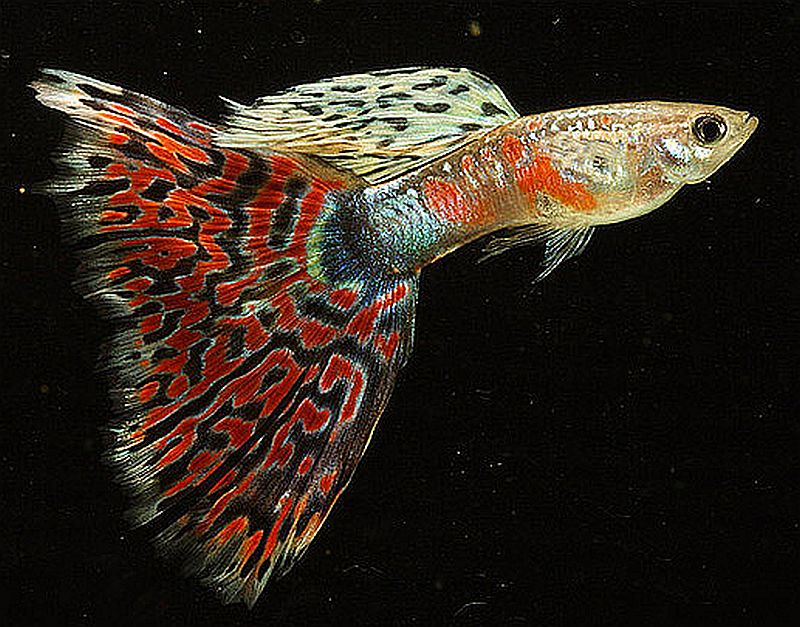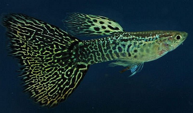 Fancy Guppy caudal fins can be a solid color, or patterned. The most common patterns are Grass, Lace, Leopard, and Mosaic.