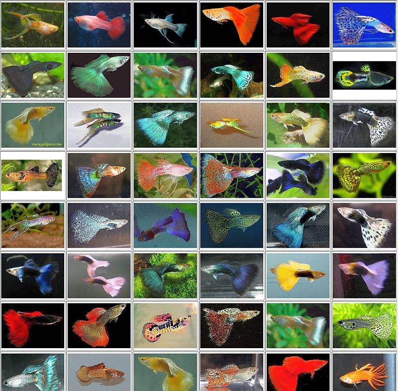 Fancy Guppies are available in every color combination of the rainbow, as well as different body patterns and tail types. Guppy breeders are constantly working on creating new varieties, and because of the limitless variations that can be bred, it is practically impossible to describe every variety here. Instead we will try to identify some of the more popular varieties available to tropical fish keeping enthusiasts.