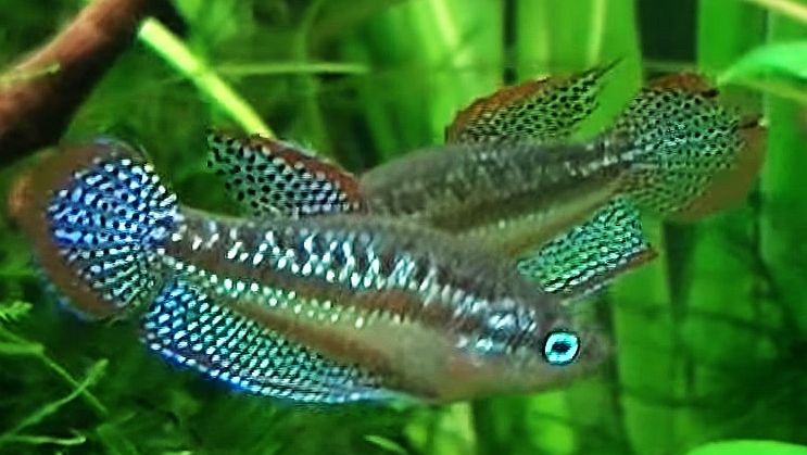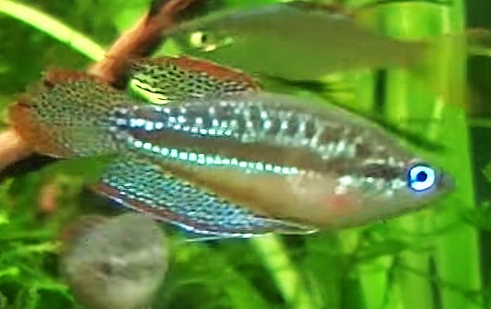 Sexually mature male Sparkling Gourami have a more intensely colored pattern than their female counterparts and develop longer ventral, anal, dorsal, and